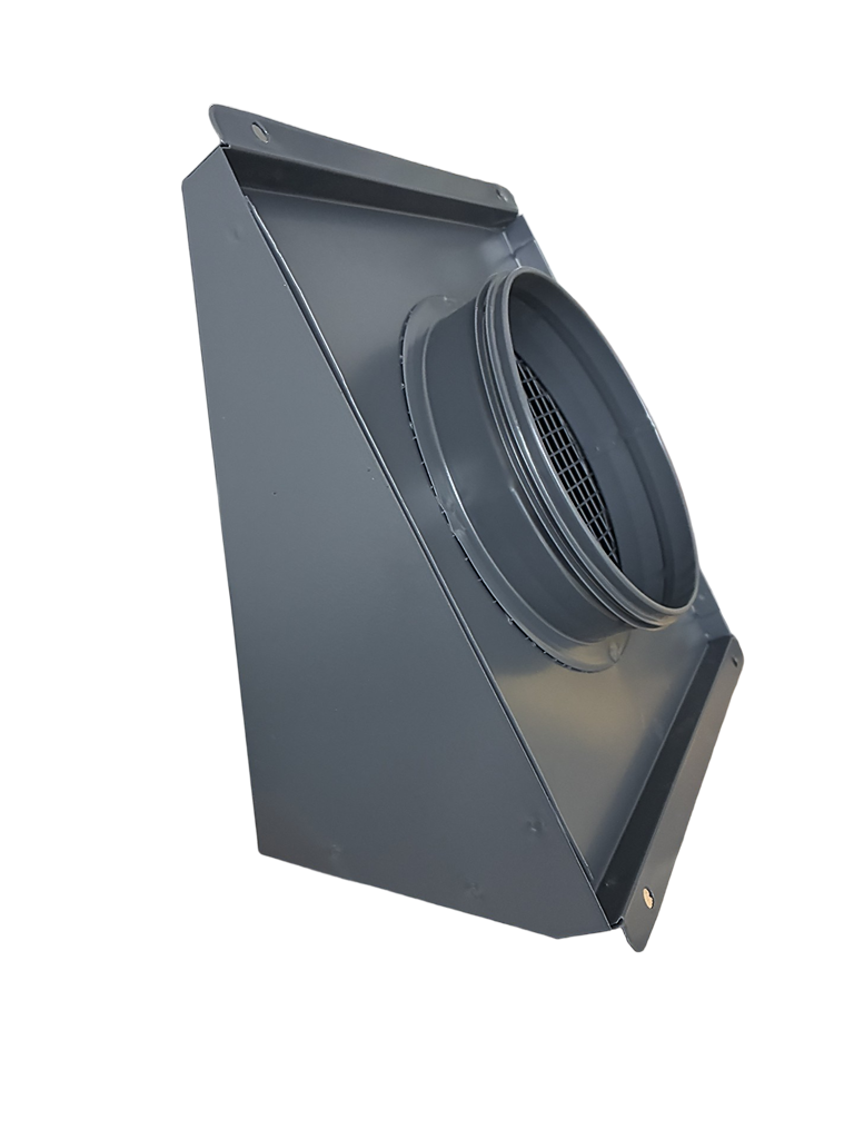 Zabezpieczony jest gęstą siatką stalową, która skutecznie chroni instalację przed przedostawaniem się owadów, liści i innych zanieczyszczeń. Dodatkowy okapnik zapobiega przedostawaniu się wody opadowej do wnętrza kanału wentylacyjnego.