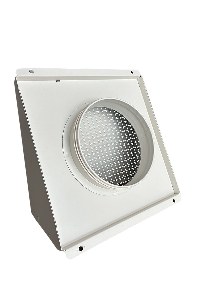 Zabezpieczony jest gęstą siatką stalową, która skutecznie chroni instalację przed przedostawaniem się owadów, liści i innych zanieczyszczeń. Dodatkowy okapnik zapobiega przedostawaniu się wody opadowej do wnętrza kanału wentylacyjnego.
