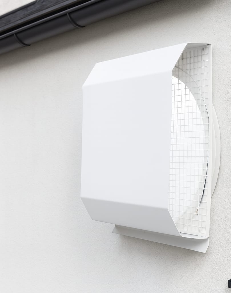 Konstrukcja z blachy ocynkowanej oraz lakier w kolorze biały RAL 9003 sprawiają, że wyrzutnia powietrza jest odporna na korozję, promieniowanie UV i zmienne warunki atmosferyczne. Neutralny, biały kolor pozwala estetycznie wkomponować element w elewację budynku jednorodzinnego, usługowego lub biurowego.