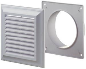 • Kratka wentylacyjna 140x140 z siatką i kołnierzem okrągłym Ø 100 mm.