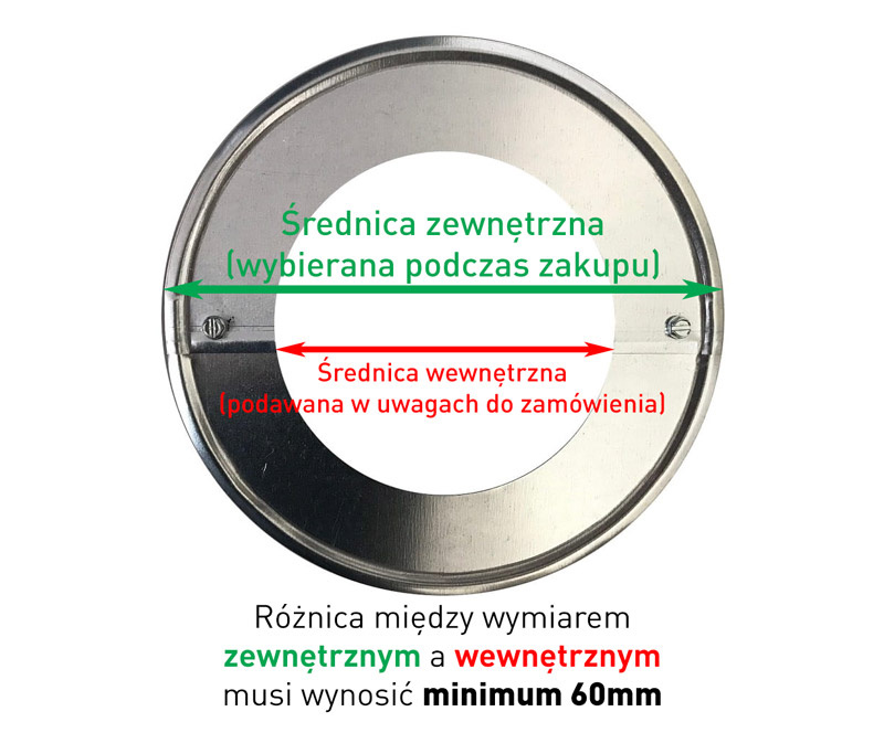 Istnieje możliwość wykonania produktu z niestandardową średnicą [co 5mm], aby to zrobić proszę wybrać rozmiar większy od docelowego oraz w uwagach do zamówienia wpisać preferowany rozmiar (np: zamawiany 130mm, docelowy 125mm).