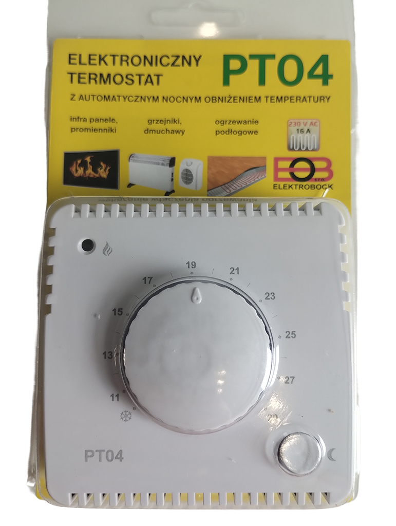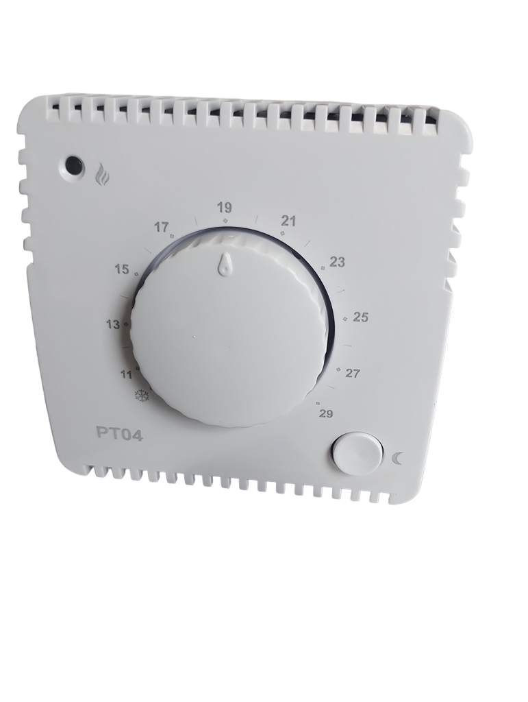 Termostat PT04 jest prostym urządzeniem służącym do sterowania temperaturą w pomieszczeniach.