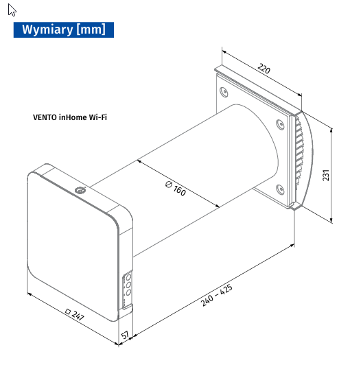 - Urządzenie jest przeznaczone do montażu w otworze przelotowym w zewnętrznej ścianie budynku.