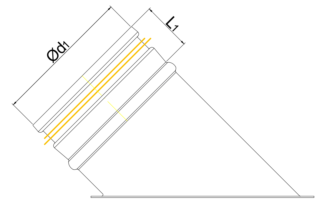 - Sztucer, króciec na rurę z uszczelką z odejściem pod kątem 45 st.