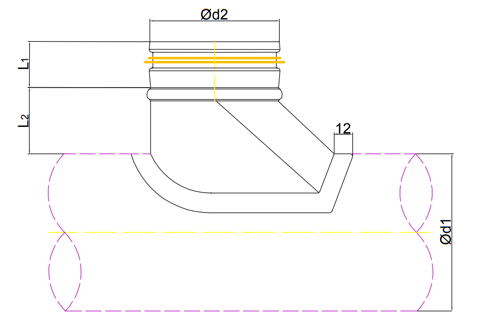 - Sztucer, króciec na rurę z uszczelką z blachy ocynkowanej odpornej na korozję i warunki atmosferyczne. Zapewniających dodatkową sztywność kształtki. Dopasowana odpowiednio średnica pozwala na optymalny przepływ powietrza.