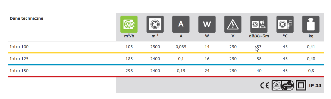 CECHY WENTYLATORA