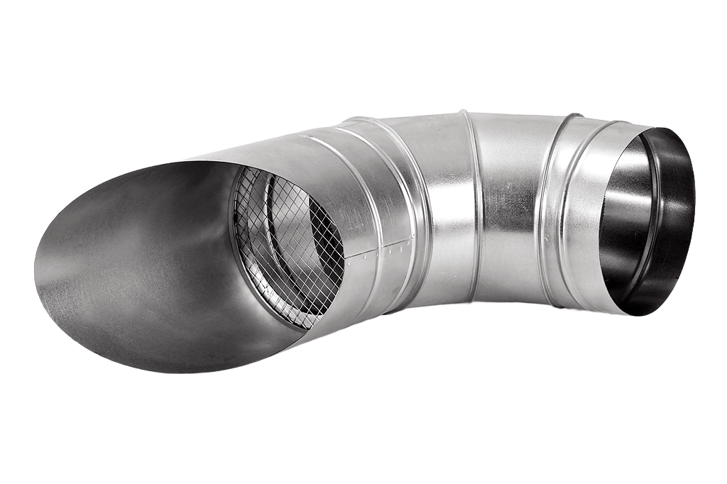 - Wyrzutnia dachowa okrągła kolanowa wygięta pod kątem 90 stopni. Wykonana z blachy ocynkowanej odpornej na korozję i warunki atmosferyczne. Wyposażona jest w siatkę zabezpieczającą przed dostawaniem się owadów.