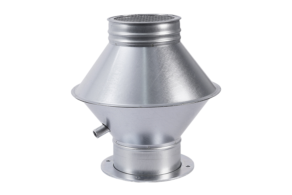- Wyrzutnia dachowa okrągła typu E. Wykonana z blachy ocynkowanej odpornej na korozję i warunki atmosferyczne. Wyposażona jest w siatkę zabezpieczającą przed dostawaniem się owadów.